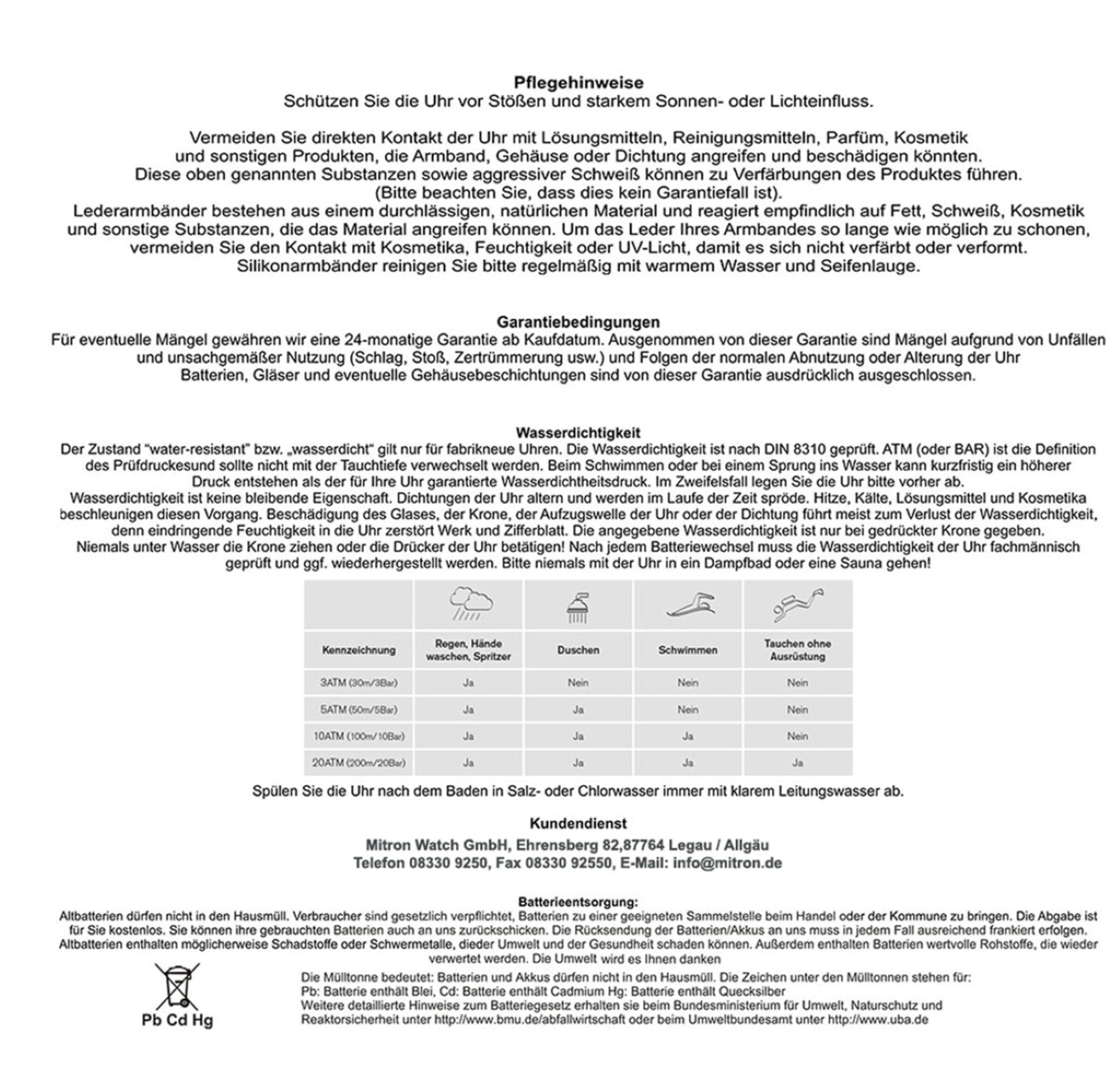 Verantwortliche Person: Mitron Watch GmbH, Ehrensberg 82, 87764 Legau/Allgäu